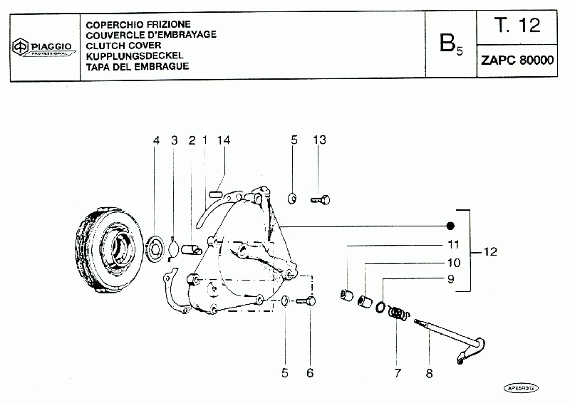 12-Kytkimen kansi, APE TAVARAMOPO, 50 cc, Piaggio APE kolmipyörä -varaosa luettelot