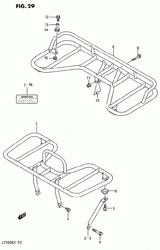 29-Etu-ja taka tavarateline, LT160 E 1989-1992, 160 cc, Suzuki ATV / mönkijät -varaosa luettelot
