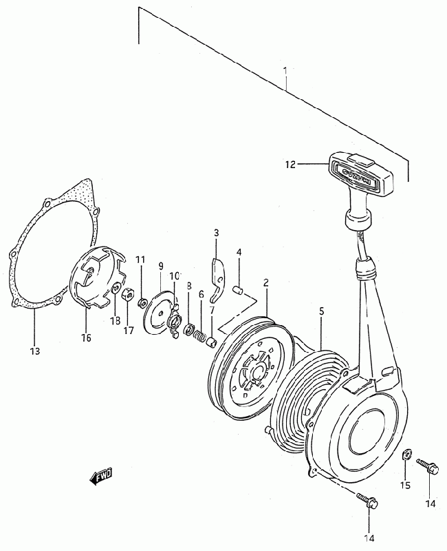 13-Käsikäynnistin, LT 4 WD neliveto 250 cc 87-95 , 250 cc, Suzuki ATV / mönkijät -varaosa luettelot