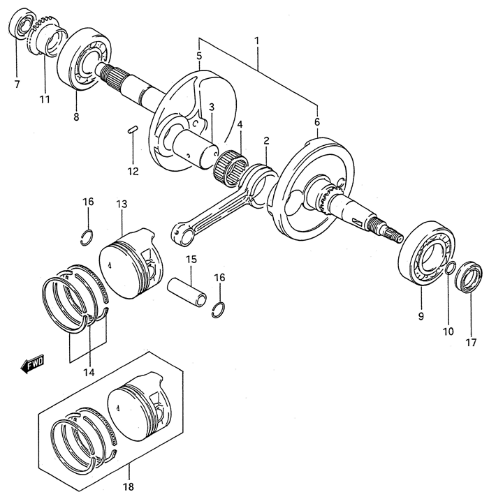 KIERTOKANKISARJA sis: Alatapin, laakerin, sivulevyt ja kiertokangen. Sopii LT-F4WDX 250cc 91-98, LT-F300cc 99-02