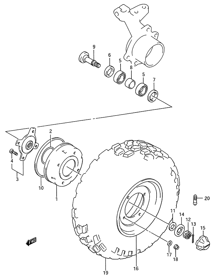 60-Etupyörä, LT-F250 ( nelitahti ) 1988-2011, 250 cc, Suzuki ATV / mönkijät -varaosa luettelot