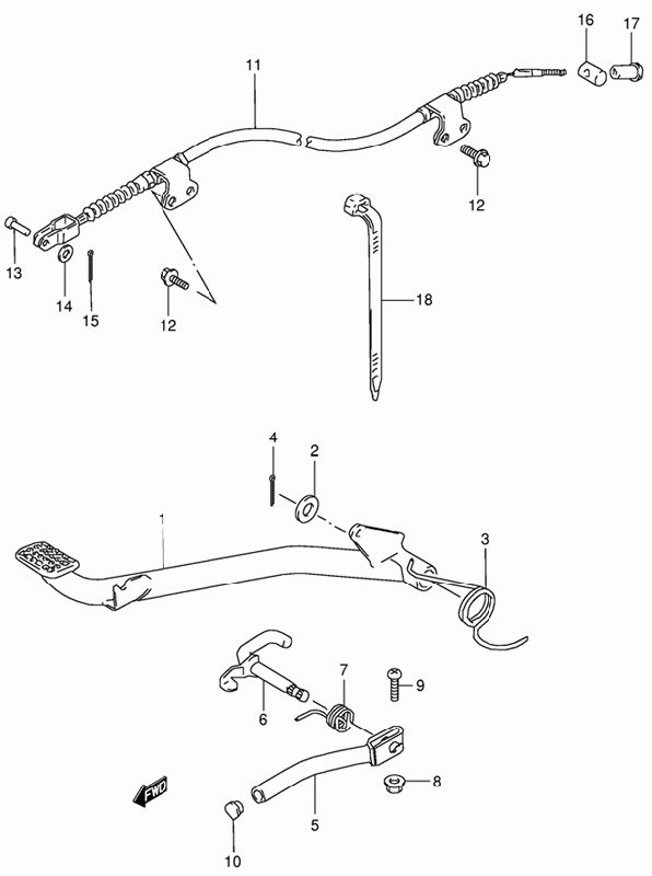 19-Jarrupoljin, -vaijeri, LT80 1987-2006, 80 cc, Suzuki ATV / mönkijät -varaosa luettelot
