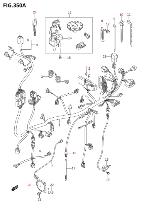 350A-Virtalukko, johtosarja, DL1000 K8 2008, 1000 cc, Suzuki-varaosa luettelot