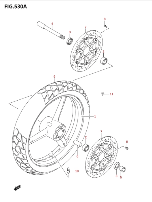 530A-Etupyörä, DL1000 K8 2008, 1000 cc, Suzuki-varaosa luettelot