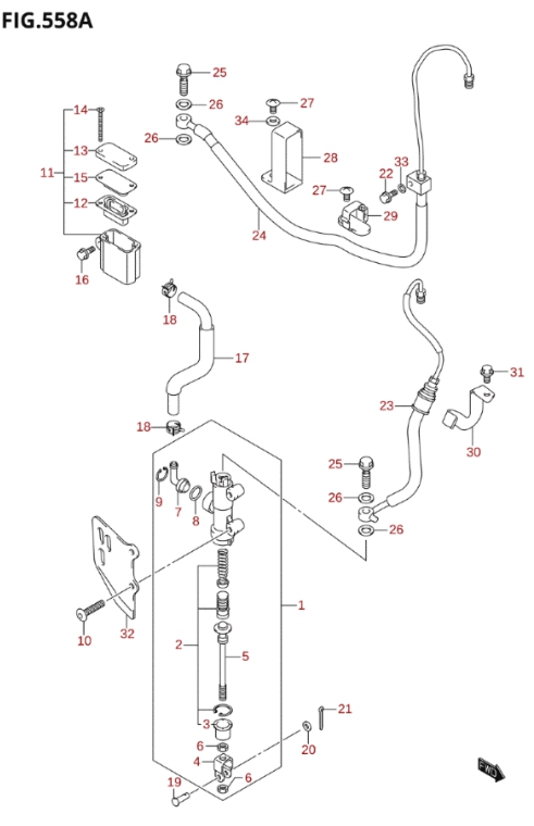 Takajarrusylinteri, DL1000 L4 2014, 1000 cc, Suzuki-varaosa luettelot