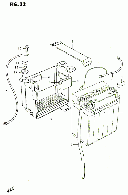 22-Akku, akkukotelo, GS1000 G Kardaani, 1000 cc, Suzuki-varaosa luettelot