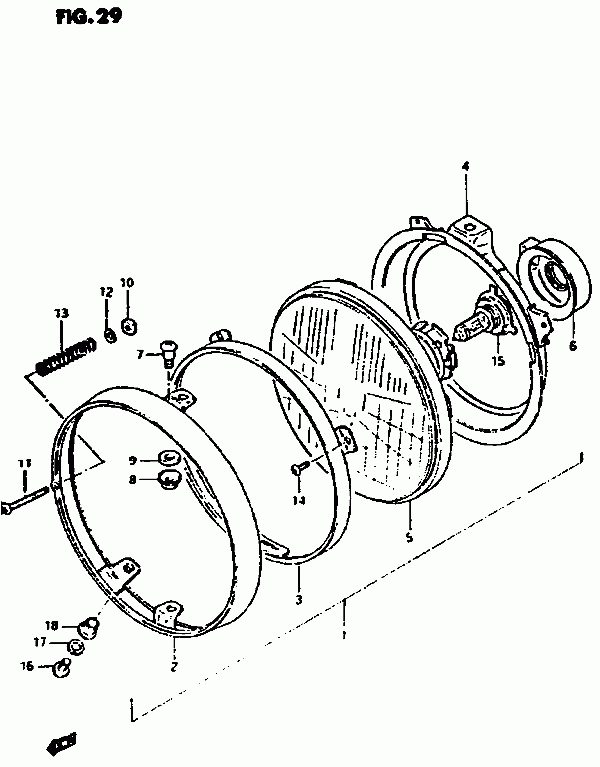 29-Etulyhty, GS-1100 G Kardaani *, 1100 cc, Suzuki-varaosa luettelot