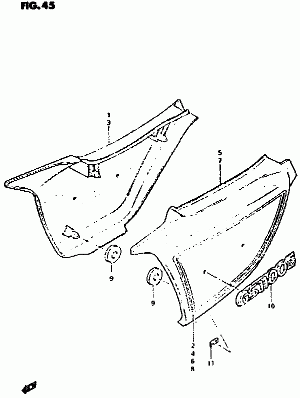 45-Sivuposket, -merkit, GS-1100 G Kardaani *, 1100 cc, Suzuki-varaosa luettelot