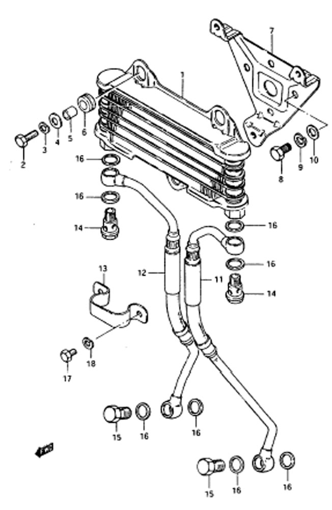 16-Öljynlauhdutin, GSX 1100 EF E/F/G 1984-1986, 1100 cc, Suzuki-varaosa luettelot