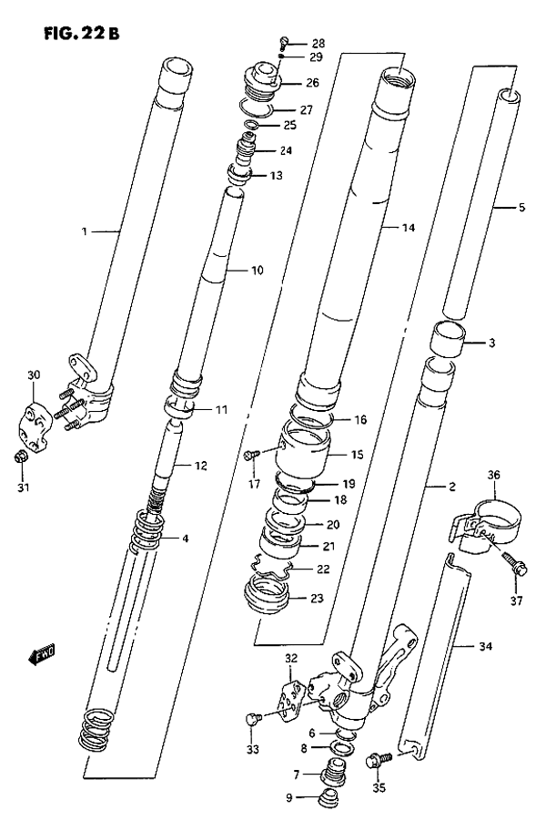 22B-Etujousitus, RM-125 K, L, M 1989-1991 *, 125 cc Motocross, Suzuki-varaosa luettelot
