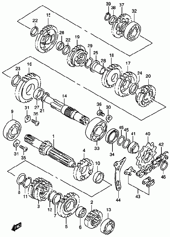 18-Vaihteisto 98-00, RM-125 T,V,W,X,Y 1996-2000 , 125 cc Motocross, Suzuki-varaosa luettelot