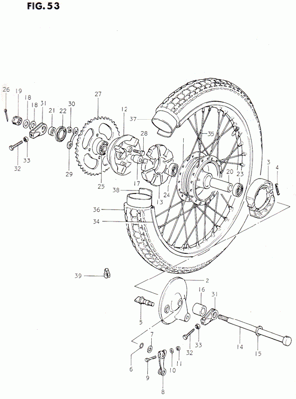 53-Takapyörä, GT-125 X4 , 125 cc, Suzuki-varaosa luettelot
