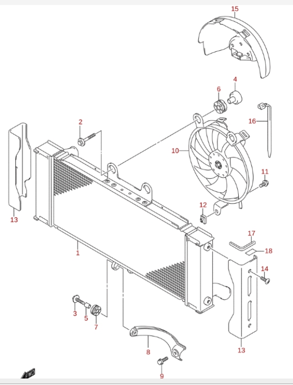 185A-Jäähdytin, GSF 1250 2009 K9, 1250 cc, Suzuki-varaosa luettelot
