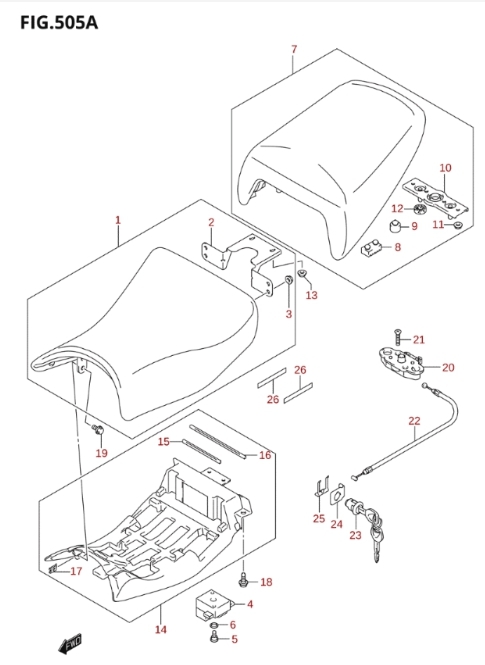 505A-Istuin, GSF1250 2008 K8, 1250 cc, Suzuki-varaosa luettelot