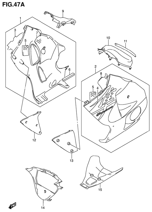 47A-Sivukatteet, GSX 1300R K4-K7 2004-2007, 1300 cc, Suzuki-varaosa luettelot
