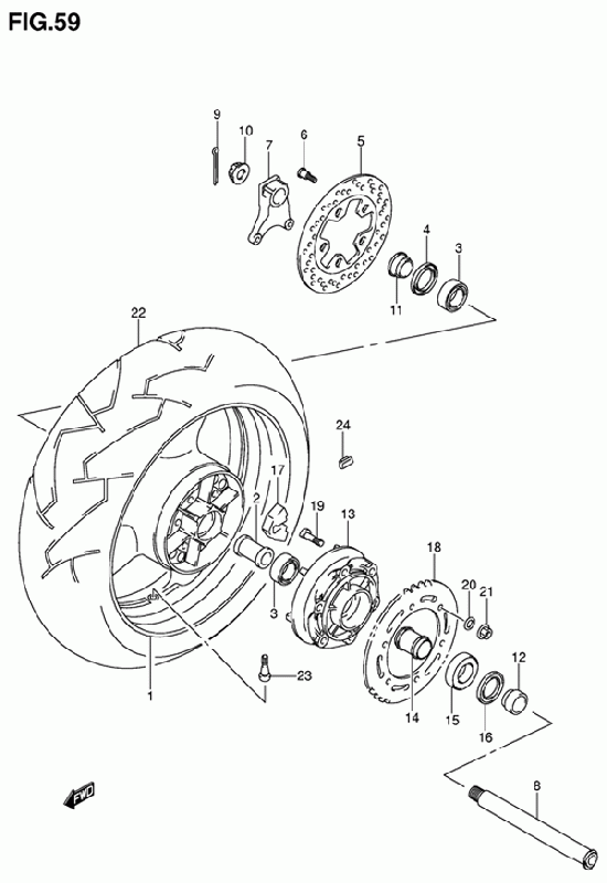 59-Takapyörä, -jarrulevy, GSX 1300R K4-K7 2004-2007, 1300 cc, Suzuki-varaosa luettelot