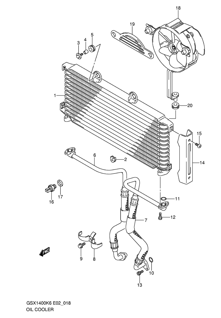 18-Lauhdutin, GSX 1400 K6-K7 2006-2007, 1400 cc, Suzuki-varaosa luettelot