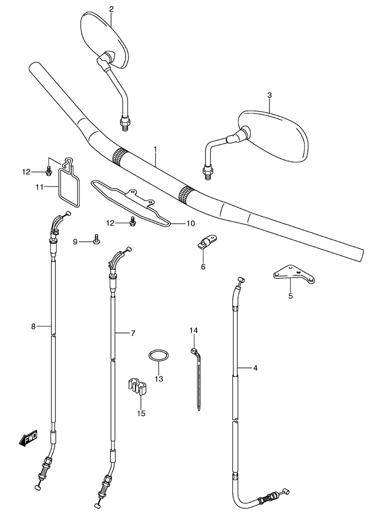 73-Ohjaintanko, vaijerit, VZR 1800 K8, 1800 cc, Suzuki-varaosa luettelot