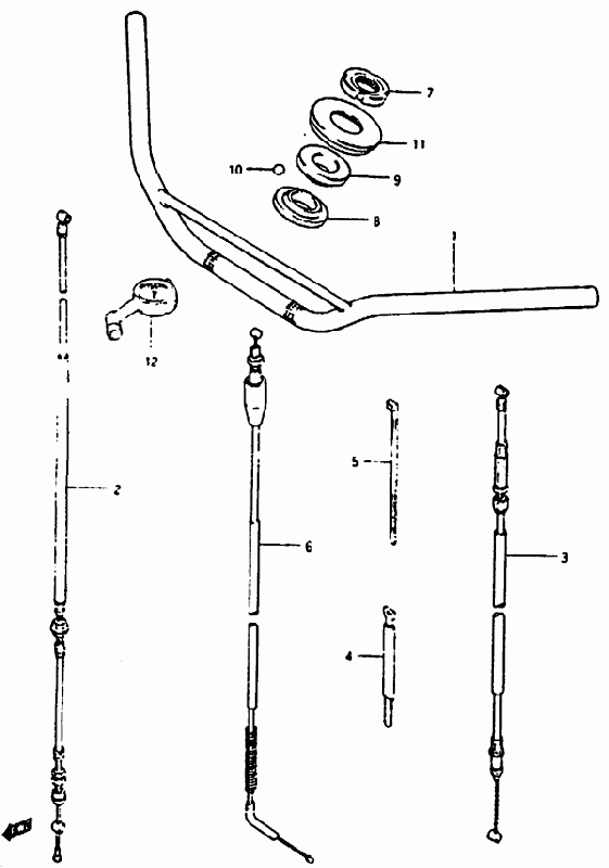 28-Ohjaustanko, vaijerit, RM-250 E,F 1984-1985, RM-250 Alkuperäisluettelot, RM-250, 250 cc Motocross, Suzuki-varaosa luettelot