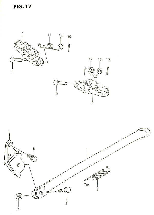 17-Jalkatapit, RM-250 K,L,M,N 1989-1992, RM-250 Alkuperäisluettelot, RM-250, 250 cc Motocross, Suzuki-varaosa luettelot