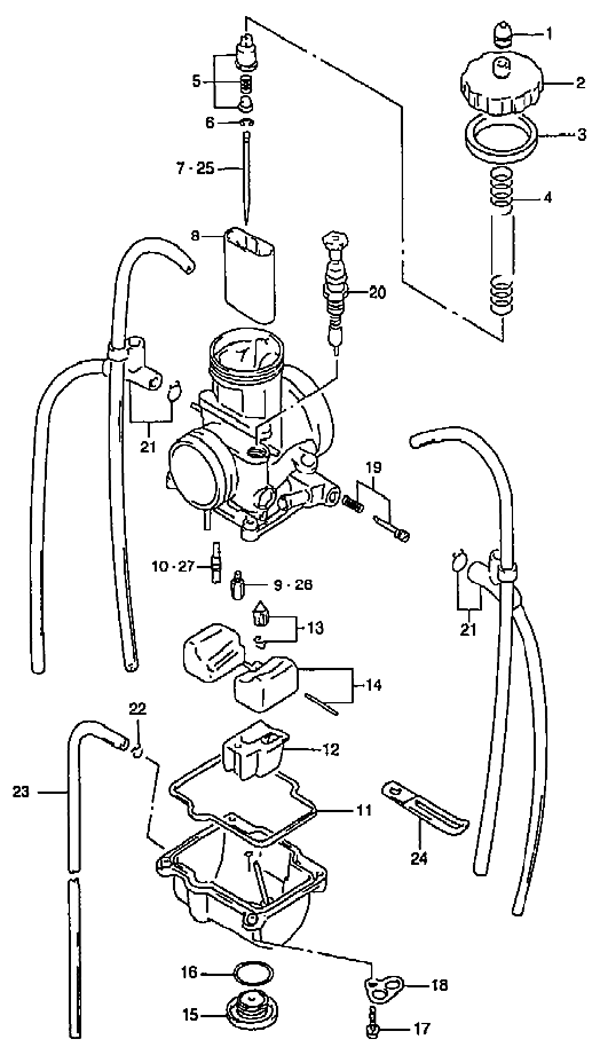 11-Kaasutin, RM 250 X 1999, RM-250 Alkuperäisluettelot, RM-250, 250 cc Motocross, Suzuki-varaosa luettelot