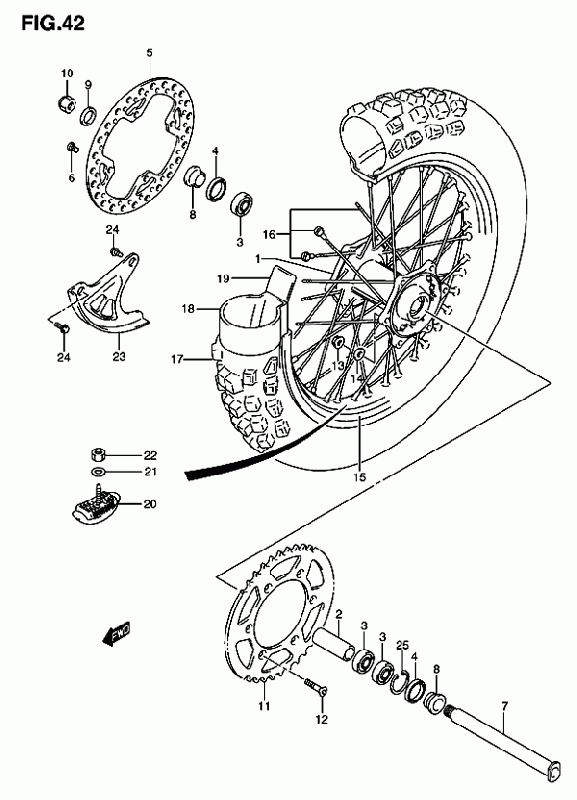 42-Takapyörä, RM-Z250 K7-K9 2007-2009 , RMZ 250 Alkuperäisluettelot, RMZ-250, 250 cc Motocross, Suzuki-varaosa luettelot