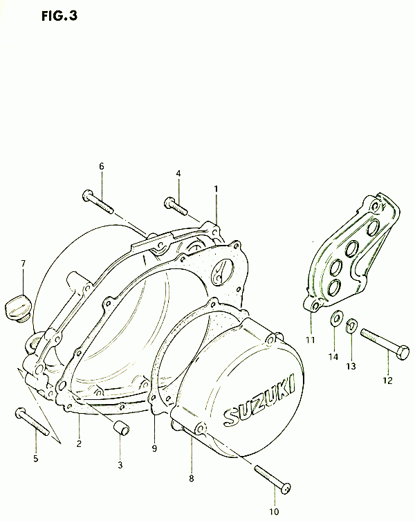 03-Moottorinposket oik. + vas., PE 250 Z 1982, 250 cc, Suzuki-varaosa luettelot