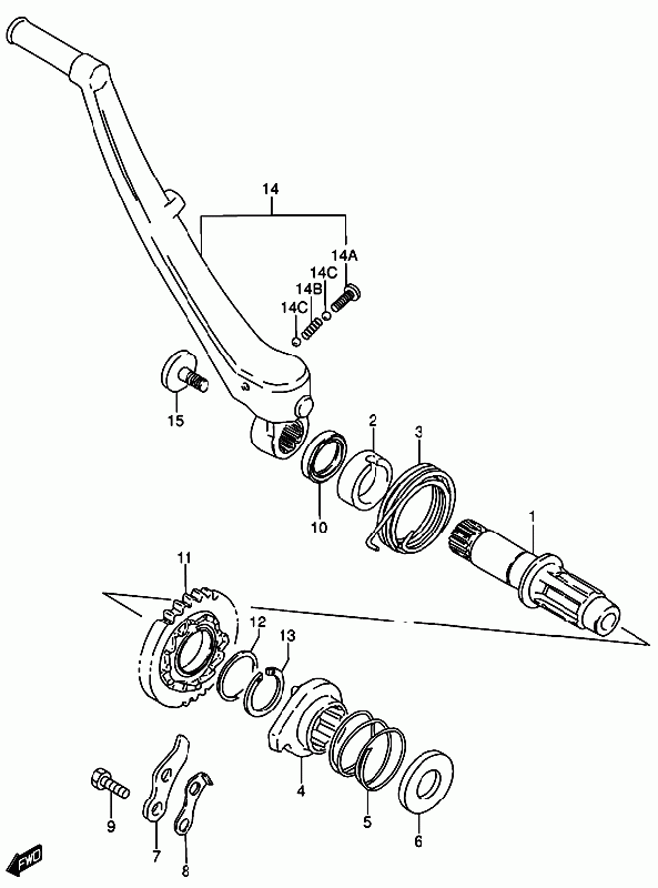 23-Käynnistinpoljin, -akseli, RMX 250 K, 250 cc, Suzuki-varaosa luettelot