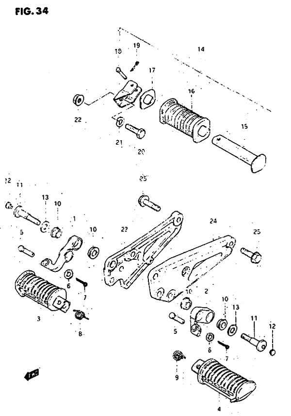 34-Jalkatapit, -kannakkeet, GS 500 ED 4-syl., 500 cc, Suzuki-varaosa luettelot