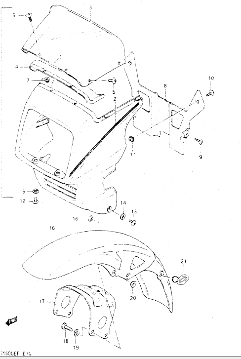 55-Etulokari, lyhdynkate, GSX 500 E, 500 cc, Suzuki-varaosa luettelot