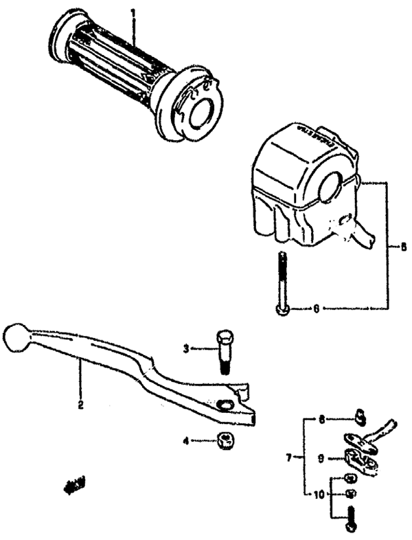 43-Oik.ohj.tangon katkaisija, etujarruvipu, kaasukahva, RG-500 G, 500 cc, Suzuki-varaosa luettelot