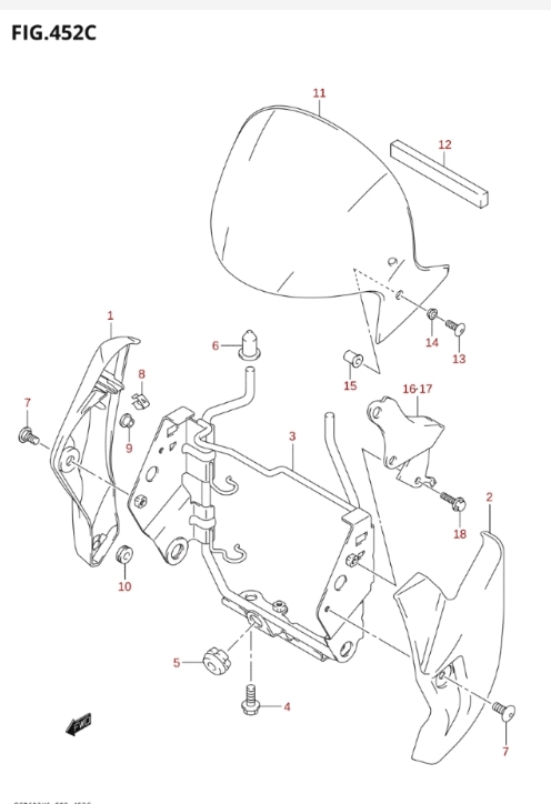 452C-Etuvalon suojus, GSR 600 2009 K9, 600 cc, Suzuki-varaosa luettelot