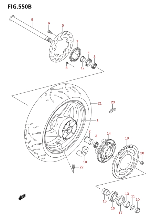 550B-Takapyörä, GSR 600A 2008 K8, 600 cc, Suzuki-varaosa luettelot