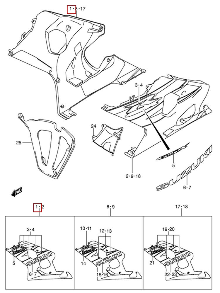 50-Alakate, GSX R600 K4 2004, 600 cc, Suzuki-varaosa luettelot