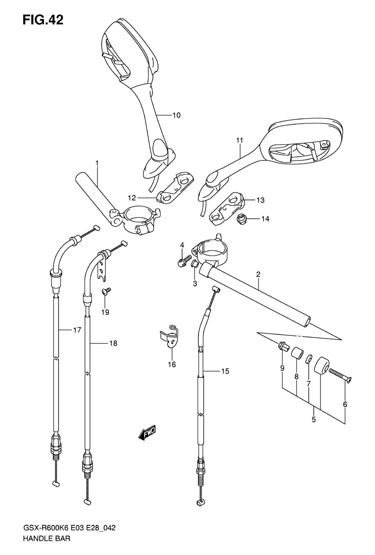 42-Ohjaintanko, vaijerit, GSX R600 vm. 2007, 600 cc, Suzuki-varaosa luettelot