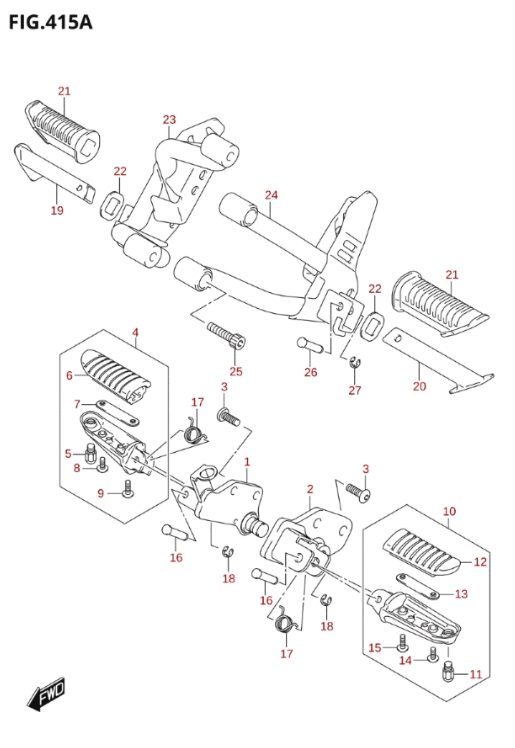 Jalkatapit, DL 650A 2017 L7, 650 cc, Suzuki-varaosa luettelot