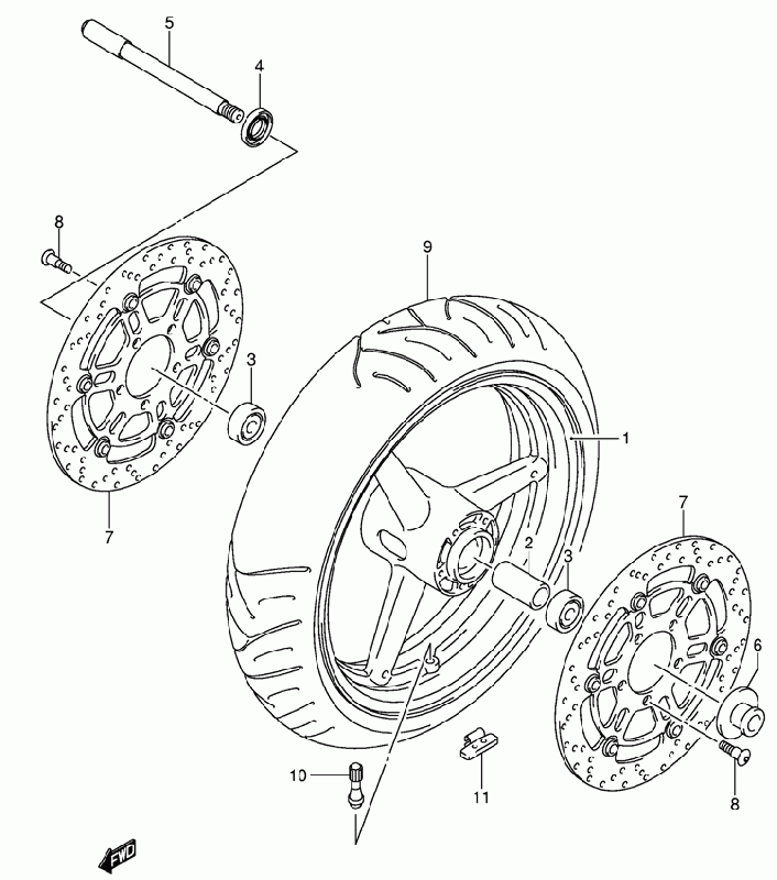 67-Etupyörä, GSF 650 K6 - K7, 650 cc, Suzuki-varaosa luettelot