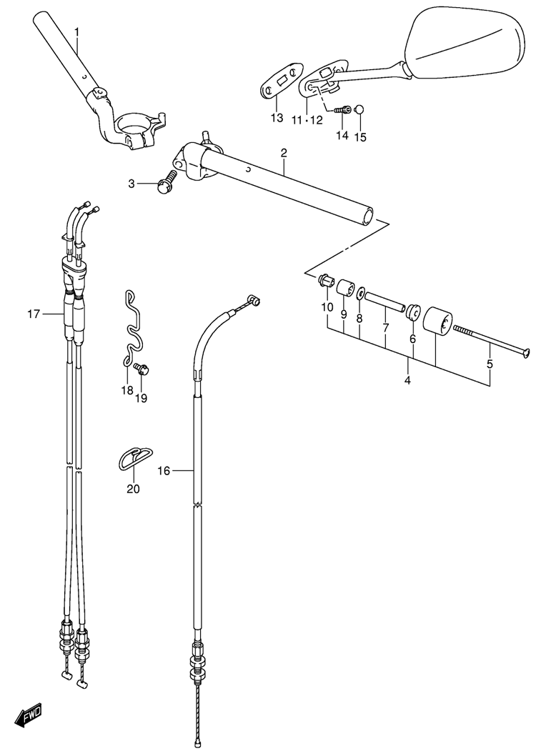 80-Ohjaintanko, vaijerit, SV 650 K4 vm. 2004, 650 cc, Suzuki-varaosa luettelot