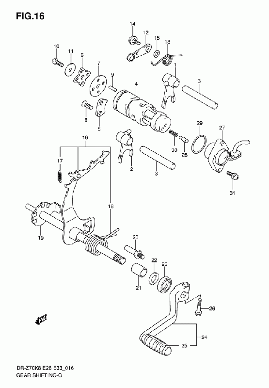 16-Vaihteensiirto, DRZ-70 2010, 70 cc, Suzuki-varaosa luettelot