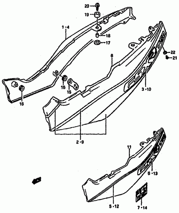64-Sivupaneelit L, GSX R750 J/K/L 1988-1990, 750 cc, Suzuki-varaosa luettelot
