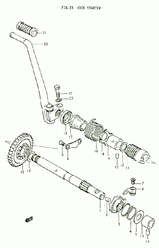 23-Käynnistinpoljin, -mekanismi, GT 750 72-75, 750 cc, Suzuki-varaosa luettelot