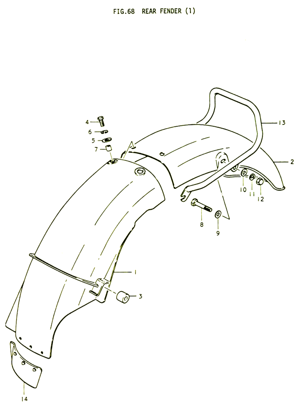 68-Takalokasuoja, GT 750 72-75, 750 cc, Suzuki-varaosa luettelot