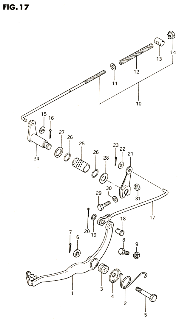 17-Jarrupoljin, jarrutanko, RM80 1980-1981 AC T,X, RM-80 Alkuperäisluettelot / Kuvastot, RM 80, 80 cc, Suzuki-varaosa luettelot