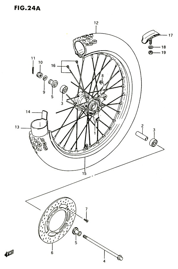 24A-Etupyörä L, M, N, RM80 1986-1992 G,H,J,K,L,M,N, RM-80 Alkuperäisluettelot / Kuvastot, RM 80, 80 cc, Suzuki-varaosa luettelot