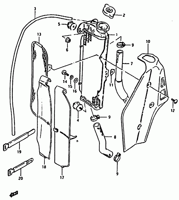 11-Jäähdytin, ilmanohjaimet, RM80HE 1983-1984 LC (Isopyörä) , RM-80 Alkuperäisluettelot / Kuvastot, RM 80, 80 cc, Suzuki-varaosa luettelot