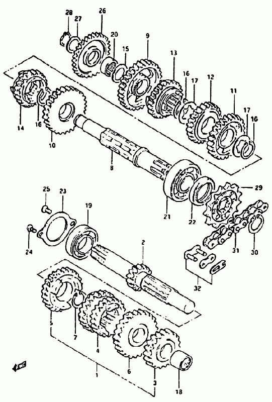 14-Vaihteisto, RM80X 1983- LC (Pikkupyörä), RM-80 Alkuperäisluettelot / Kuvastot, RM 80, 80 cc, Suzuki-varaosa luettelot