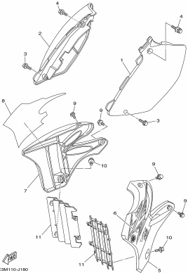 18-Sivupaneelit, YZ 125 2010, 125 cc Off-road, Yamaha -varaosa luettelot