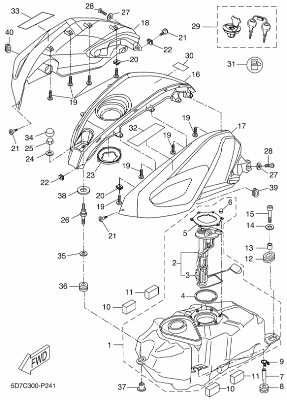24-Polttoainetankki, MT125 A 2016, MT 125 Mallisto, 125 cc Rekisteröitävät mallit, Yamaha -varaosa luettelot
