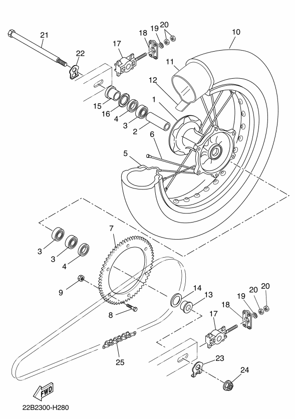 28-Takapyörä, WR125X 2011, WR 125 Mallit, 125 cc Rekisteröitävät mallit, Yamaha -varaosa luettelot