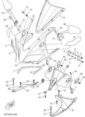 35-Etukate, YZF-R125 2012, YZF 125 Mallit, 125 cc Rekisteröitävät mallit, Yamaha -varaosa luettelot
